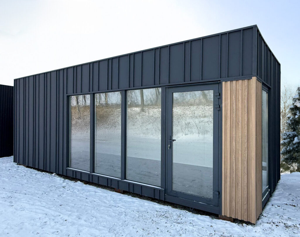 Færdigt modul med betonlook vinylgulv, hvide vægge og loft. Indret præcis, som du ønsker. Tryk for flere billeder!