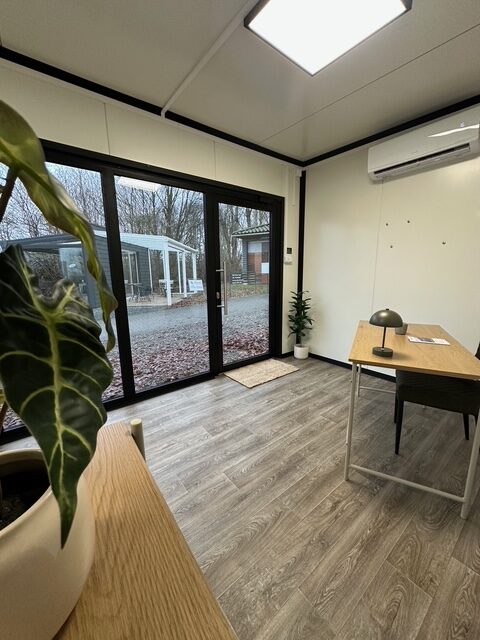 Pavillonen fungerer desuden perfekt som selvstændig bygning – eksempelvis som ekstra bolig, separat arbejdsområde eller fleksibelt kontor. For virksomheder kan den indrettes som mindre kontor, mødelokale eller behandlingsrum, hvor der er behov for ro, professionalisme og privatliv.